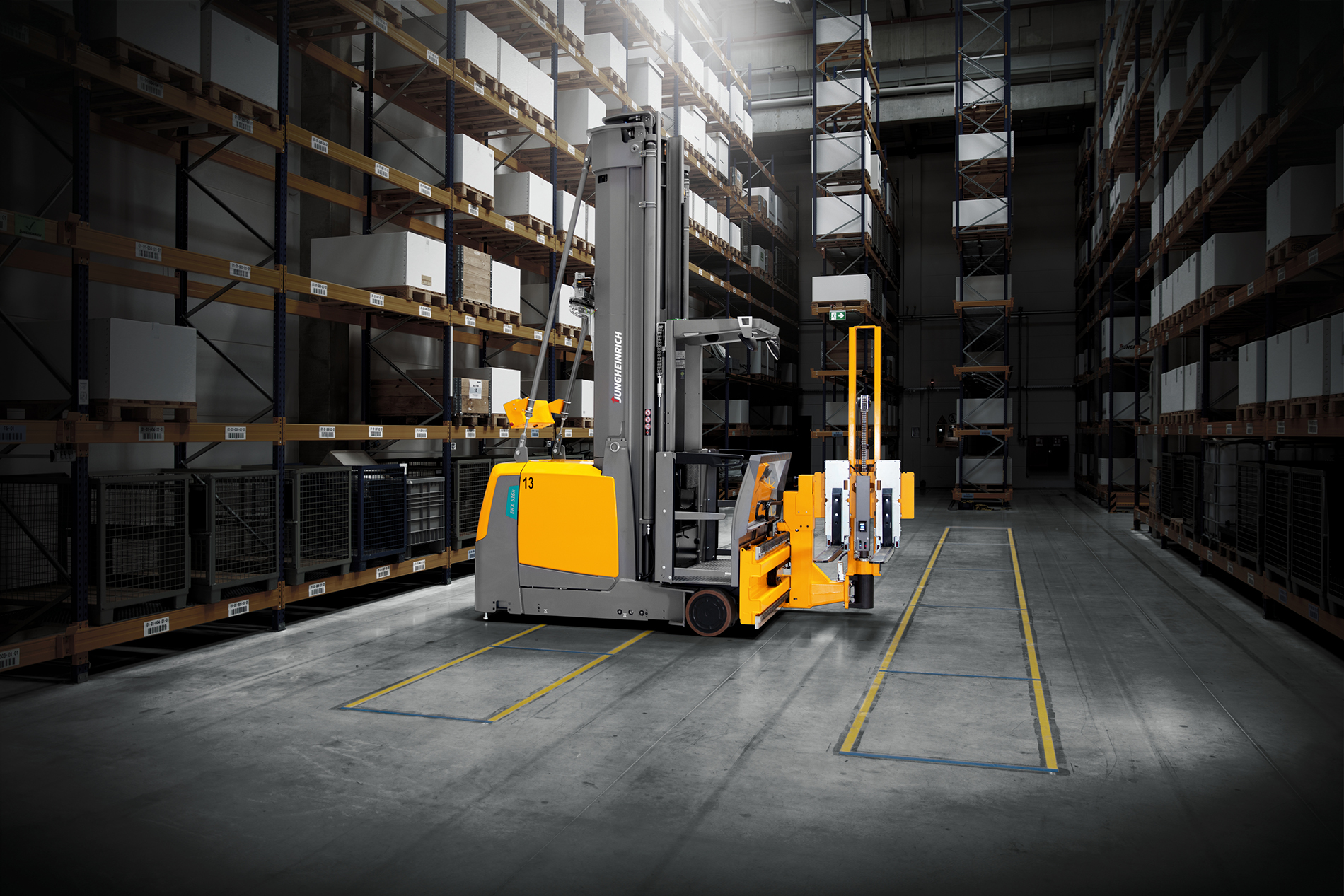 En tant qu’entrepreneur général, Jungheinrich se charge de l’ensemble du système d’automatisation : outre les quatre robots mobiles EKX 516a, l’entreprise fournit également le système de rayonnage complet, la technologie de convoyage avec contrôle des contours, le système de gestion d’entrepôt (WCS), ainsi que la visualisation des processus (PMI). Cette approche globale garantit l’alignement parfait et le fonctionnement transparent de l’ensemble des composants du système.