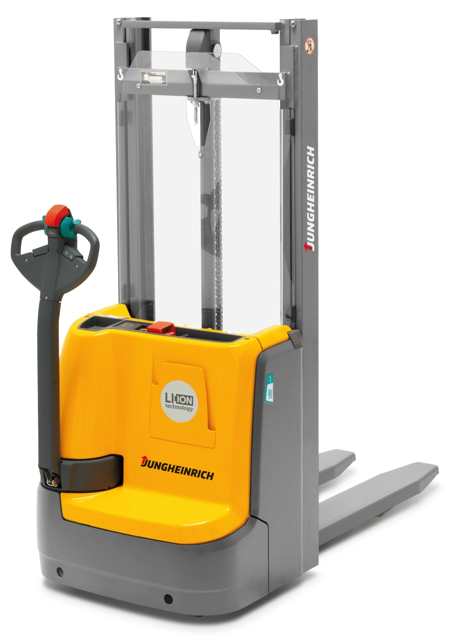 Les gerbeurs accompagnants robustes et maniables de la série EJC 1 sont des assistants puissants pour des tâches efficaces de gerbage et de transport dans votre entrepôt. Avec une largeur de travail réduite, ils sont particulièrement appropriés pour le déplacement de charges dans des espaces restreints. La vitesse lente permet une maniabilité encore meilleure pour des manœuvres sûres lorsque le timon est relevé. La tête de timon multifonctions dispose d’une commande intuitive à deux mains et permet à l’opérateur de se concentrer pleinement sur le gerbage. Cela contribue à une plus grande sécurité dans votre entrepôt. Pour une utilisation flexible, les EJC de la série 1 peuvent être équipés en option d’un chargeur intégré qui charge les batteries durables facilement et à tout moment sur une prise de courant classique 230 V.