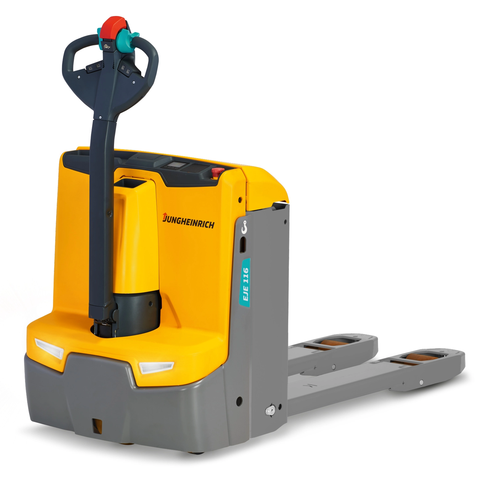Les transpalettes accompagnants électriques maniables et économiques de la série EJE 1 sont idéaux pour le chargement et le déchargement de camions et le transport quotidien de palettes. Grâce à leurs dimensions compactes et leur poids léger, ils sont également parfaitement adaptés en tant qu’appareils embarqués. Les roues stabilisatrices latérales garantissent une grande sécurité de conduite. L’espacement sûr entre l’opérateur et le chariot est assuré par le long timon à ancrage bas, aussi bien dans les virages qu’en ligne droite. Nos moteurs à courant triphasé offrent un rendement optimal. Ainsi, les EJE de la série 1 sont à votre disposition pour de longues applications avec une puissance constante. Grâce à un remplacement batterie latéral rapide, disponible en option à partir de l'EJE 116, les EJE série 1 constituent des outils efficaces même en exploitation sur plusieurs postes. Les batteries plomb-ouvert longue durée réduisent dans ce cadre durablement les coûts d’exploitation. Cette nouvelle génération du classique Jungheinrich constitue ainsi le produit premium dans son segment.