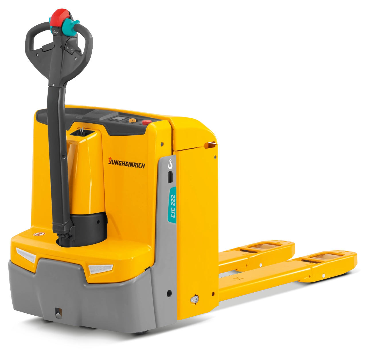 Les transpalettes accompagnants électriques maniables et particulièrement performants de la série EJE 2 convainquent par une productivité maximale et un moteur de traction à courant triphasé nécessitant peu d’entretien. Le moteur de levée puissant assure également le transport des charges les plus lourdes. Avec nos batteries plomb-ouvert à longue durée de vie ou notre technologie lithium-ion innovante et une gestion de l’énergie parfaitement coordonnée, les EJE 2 atteignent leur vitesse maximale même avec les charges les plus lourdes. Particulièrement important pour les charges lourdes : la sécurité est au centre des EJE série 2. Ainsi, le timon long à ancrage bas, par exemple, assure un espace suffisant entre le chariot et l’opérateur. Avec leur châssis en acier particulièrement robuste, une construction de fourches renforcée et des roues stabilisatrices résistantes au frottement, les transpalettes EJE 2 requièrent extrêmement peu de maintenance. Avec les batteries particulièrement grandes, ils sont en outre toujours disponibles, même en cas de longues applications intensives. Pour une manutention fiable et efficace des marchandises au quotidien.