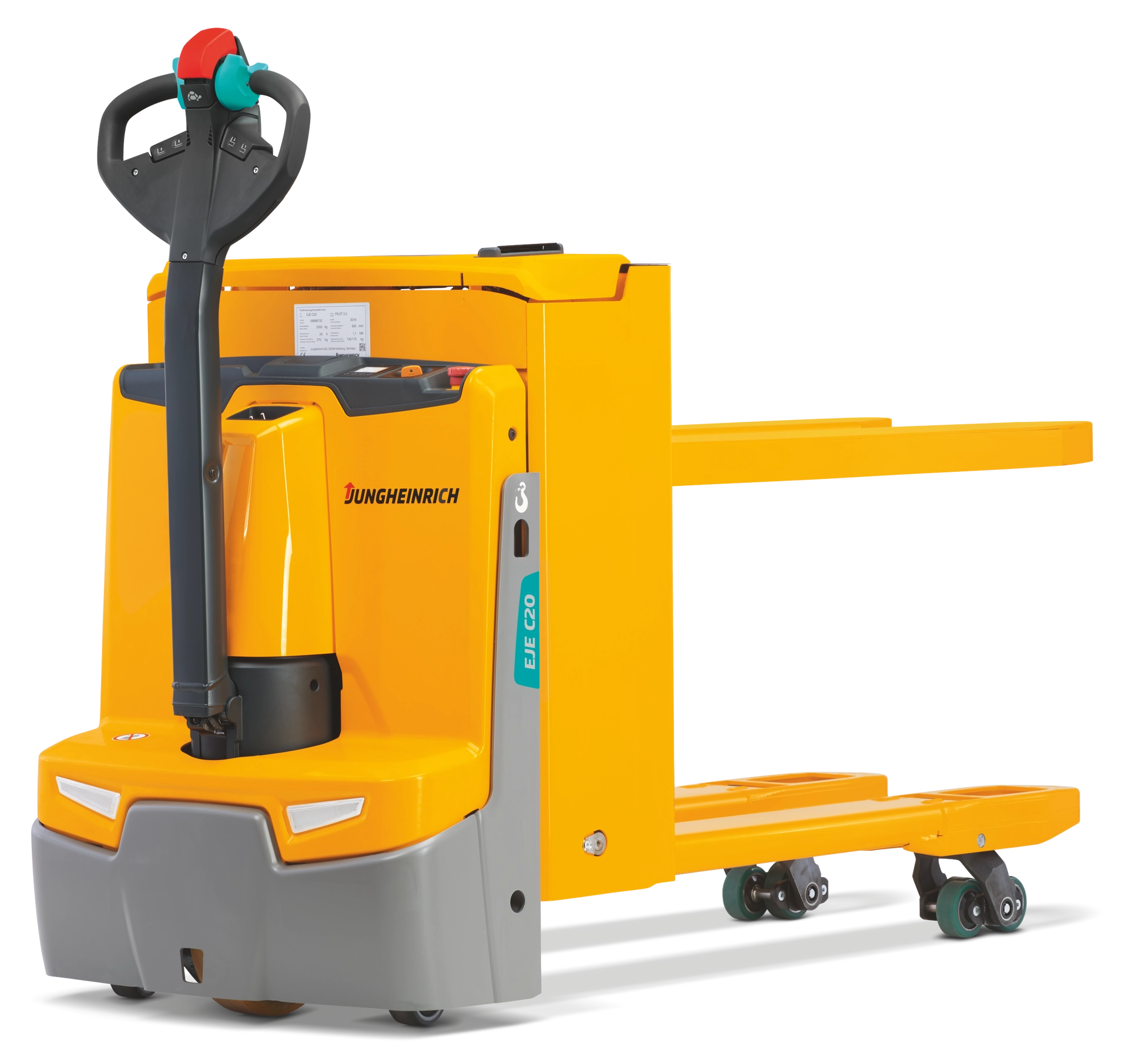 Le transpalette électrique à levée ergonomique maniable EJE C20 est l'outil polyvalent pour des applications où des marchandises doivent être déplacées et compilées pour la préparation de commandes. En plus de la levée des bras porteurs, l’appareil dispose d’un mât simple intégré qui peut lever les marchandises jusqu’à 752 mm. La marchandise est ainsi amenée à une hauteur de prise ergonomique et les demi-palettes sont prélevées rapidement et efficacement. Ainsi, le transpalette accompagnant électrique est l’appareil idéal pour le commerce de détail. En particulier lorsque les marchandises doivent être déplacées rapidement et efficacement, l’EJE C20 offre une vitesse élevée et une accélération puissante avec des valeurs de consommation réduites. La sécurité a également une importance capitale pour l’EJE C20. Le timon à ancrage bas assure un espace suffisant entre le chariot et l’opérateur. En espace restreint, le bouton de vitesse lente permet des manœuvres sures avec le timon relevé.