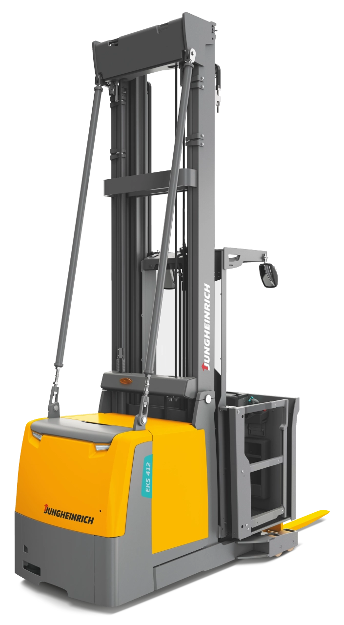 Les préparateurs de commandes verticaux efficaces EKS 412 et EKS 310 sont optimisés pour l’utilisation dans votre entrepôt avec d’excellentes performances de traction et de levée. Dans l’entrepôt à allées larges, les deux nouveaux modèles 24 V économes en énergie et à déplacement libre sont convaincants avec leur très bonne ergonomie et leur rendement de picking. Grâce à la gamme étendue de mâts, des hauteurs de picking de plus de 10 mètres sont possibles sans problème. Grâce à leurs nombreuses options d'équipement individuelles, les deux préparateurs de commandes verticaux peuvent être utilisés pour une large gamme d'applications et permettent un travail particulièrement ergonomique grâce à un concept de commande optimisé et une excellente vue panoramique. Équipés d’une puissante batterie lithium-ions ou de batteries plomb-acide : Nos nouveaux préparateurs de commandes verticaux EKS 412 et EKS 310 réunissent un rendement de picking optimal et une efficacité énergétique convaincante.
