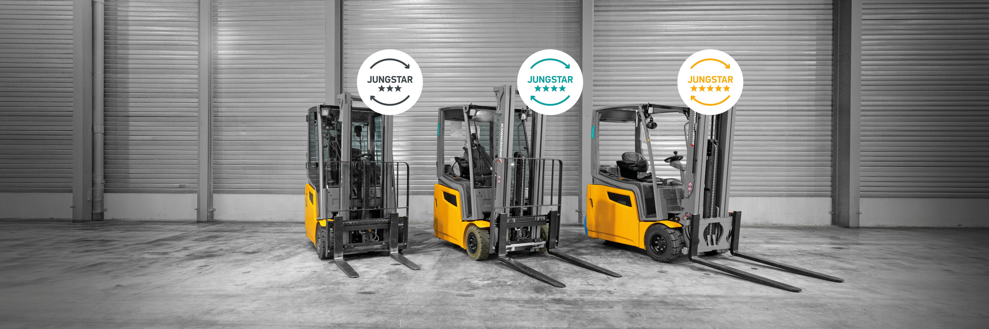 Avec les JUNGSTARS, Jungheinrich propose une gamme soigneusement sélectionnée de chariots d'occasion, allant des chariots de magasinage aux chariots élévateurs. Chaque chariot d'occasion repose sur la même base solide : un chariot Jungheinrich d'occasion fiable, ayant fait l'objet de tests approfondis en matière de sécurité et de fonctionnalité. Vous choisissez ensuite votre niveau d'étoiles – 3, 4 ou 5 étoiles – qui indique le degré de minutie avec lequel le chariot élévateur a été contrôlé et renouvelé. Vous adaptez ainsi parfaitement votre JUNGSTAR à vos attentes, à votre budget et à vos préférences.