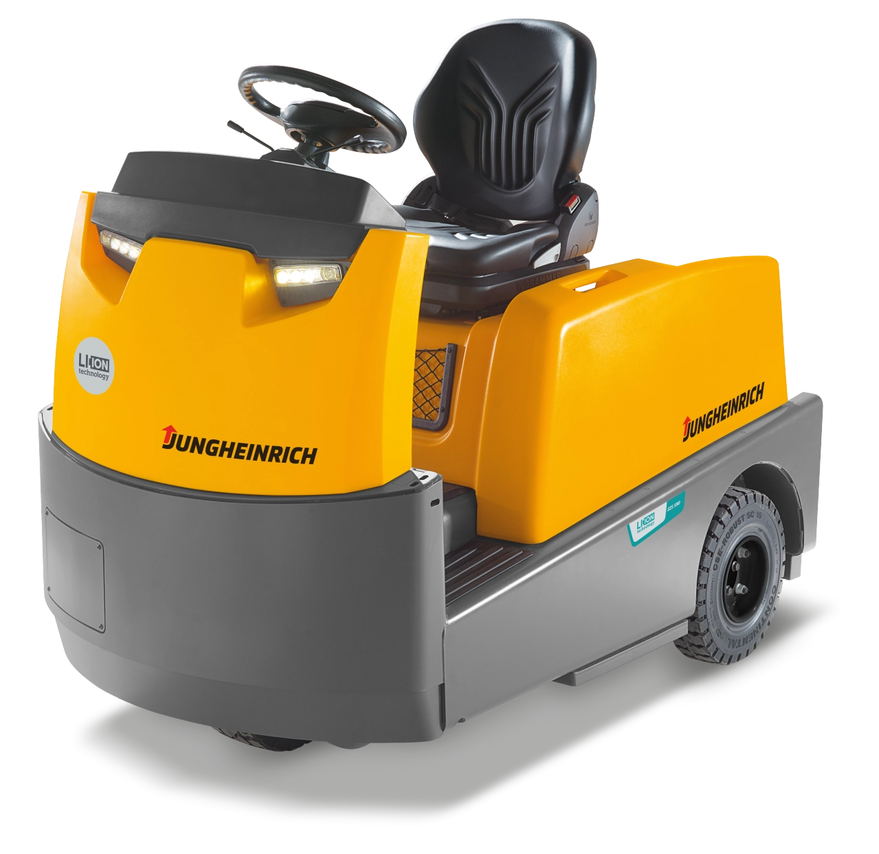 Onze solide en dynamische trekkers met zitplaats serie 5 zijn ideaal voor efficiënte transporttaken met lasten tot 10 ton, in trolleytreinen vooral in combinatie met de aanhangwagens van Jungheinrich. Ga voor stevig vermogen voor binnen- en buitentoepassingen met een krachtig stalen frame, dat gegarandeerd de levensduur van de trekker meegaat. Het krachtige en efficiënte aandrijfconcept wordt ondersteund door een 48 V AC-motor met krachtige acceleratie en hoge topsnelheden. De koppeling is in verschillende uitvoeringen verkrijgbaar, vanuit de zitpositie duidelijk zichtbaar en gemakkelijk bereikbaar. Het volledig geveerde chassis spaart de rug van de bestuurder evenals de truck. De ruime en comfortabele bestuurdersplaats biedt voldoende beenruimte en gemakkelijk bereikbare bedieningselementen, zoals het stuurwiel, de rijrichtingsschakelaar en de richtingaanwijzerhendel. Bovendien maakt de lage opstap het makkelijk om in te stappen.